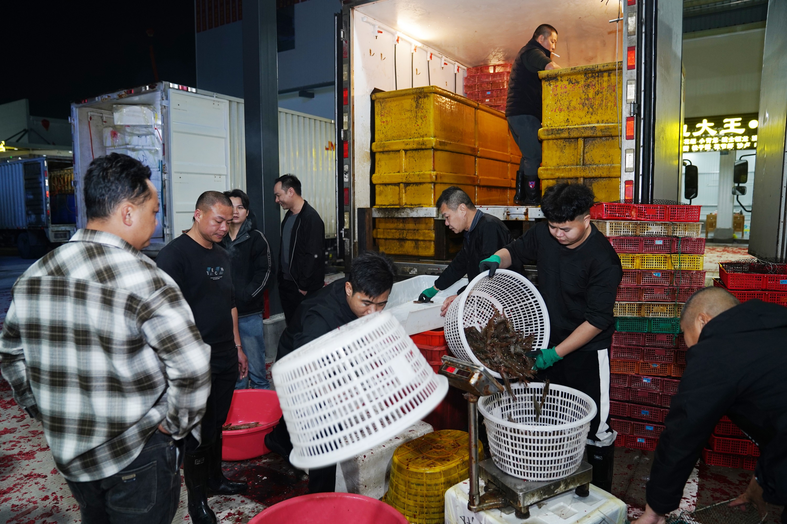 "We started moving in and setting up our booths during the daytime, and all the fresh seafood was on the shelves by the early morning, ensuring that the first batch of buyers at the market can purchase the freshest aquatic products," said a merchant specializing in deep-sea fish while arranging his stall.