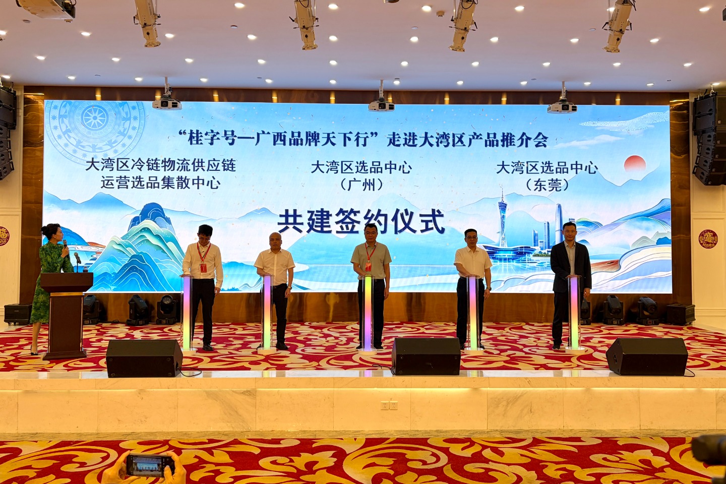 玉湖冷鏈(廣州)交易中心副董事長張春華受邀出席並作主旨演講,現場與廣西壯族自治區產品質量檢驗研究院黨委書記、院長蒙泳,廣西壯族自治區對接粵港澳大灣區建設綜合服務中心主任黎錦共同簽署《「桂字號——廣西品牌天下行」大灣區冷鏈物流供應鏈運營選品集散中心共建合作協議》。三方將展開為期五年的深度協作,攜手打造「桂字號」冷鏈中心,為廣西優質農產品「入灣出海」鋪設高效通道。