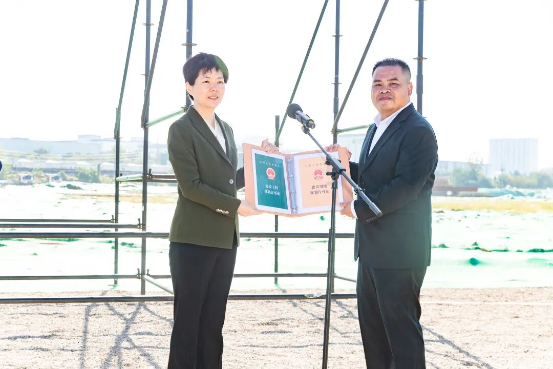 Following the addresses, Jiang Min presented Wei Jia with the project commencement approval documents.