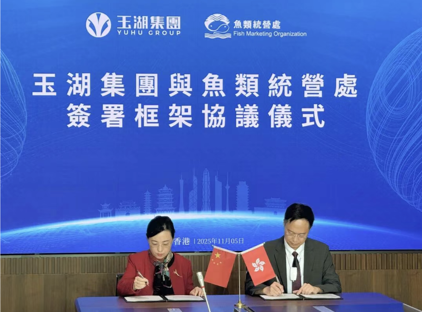 Amid the current trend of “mainland brands going global and premium overseas products accelerating entry into China,” global enterprises are actively tapping into the Chinese market. The 8th China International Import Expo (CIIE), held in Shanghai from November 5 to 10, 2025, attracted over 4,108 overseas exhibitors from 155 countries/ regions and international organizations, setting a new record in exhibition area. Against the backdrop of this global trade event, Yuhu Group and the Hong Kong Fish Marketing Organization (FMO) held a framework agreement signing ceremony in Hong Kong on November 5, officially announcing Yuhu Group as the strategic partner for promoting the “Premium Hong Kong Fish” brand in mainland China.