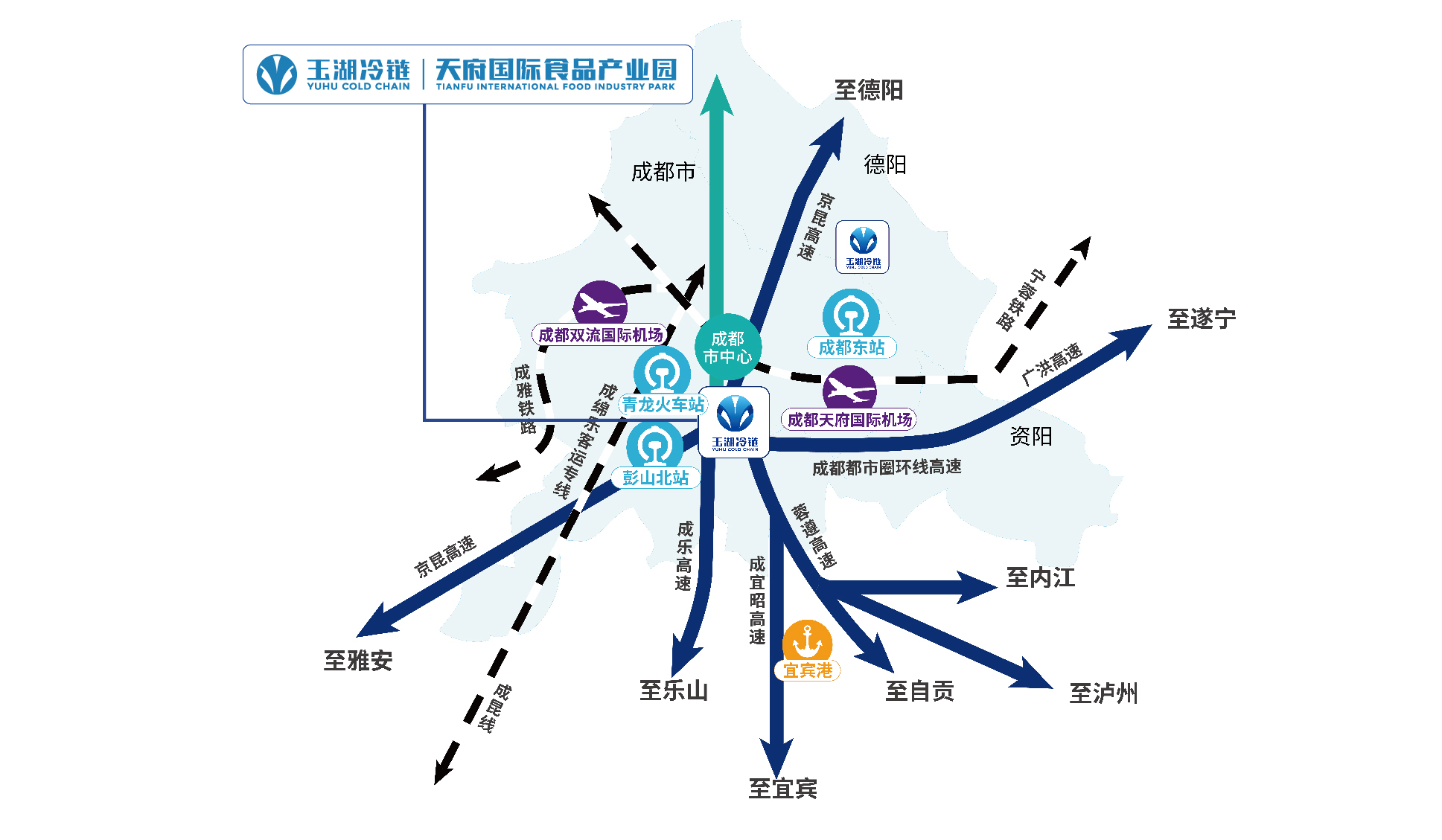 From building a global cold chain network to deepening roots in the western China market, Yuhu Cold Chain has always been driven by the mission of advancing high-quality development in China's food supply chain. The establishment of Yuhu Cold Chain · Tianfu International Food Industrial Park is both a key node in Yuhu Cold Chain's national footprint and a strategic commitment to upgrading the food industry in western China. Looking ahead, the park will bring together leading enterprises from across the food industry value chain—through its end-to-end resources, innovative operating model, robust infrastructure, and professional services. Rooted in Tianfu New Area, radiating across the wider western region, and connected to the world, it is set to become the central engine of food industry transformation in western China, and to write a new chapter in the high-quality development of the global food supply chain.