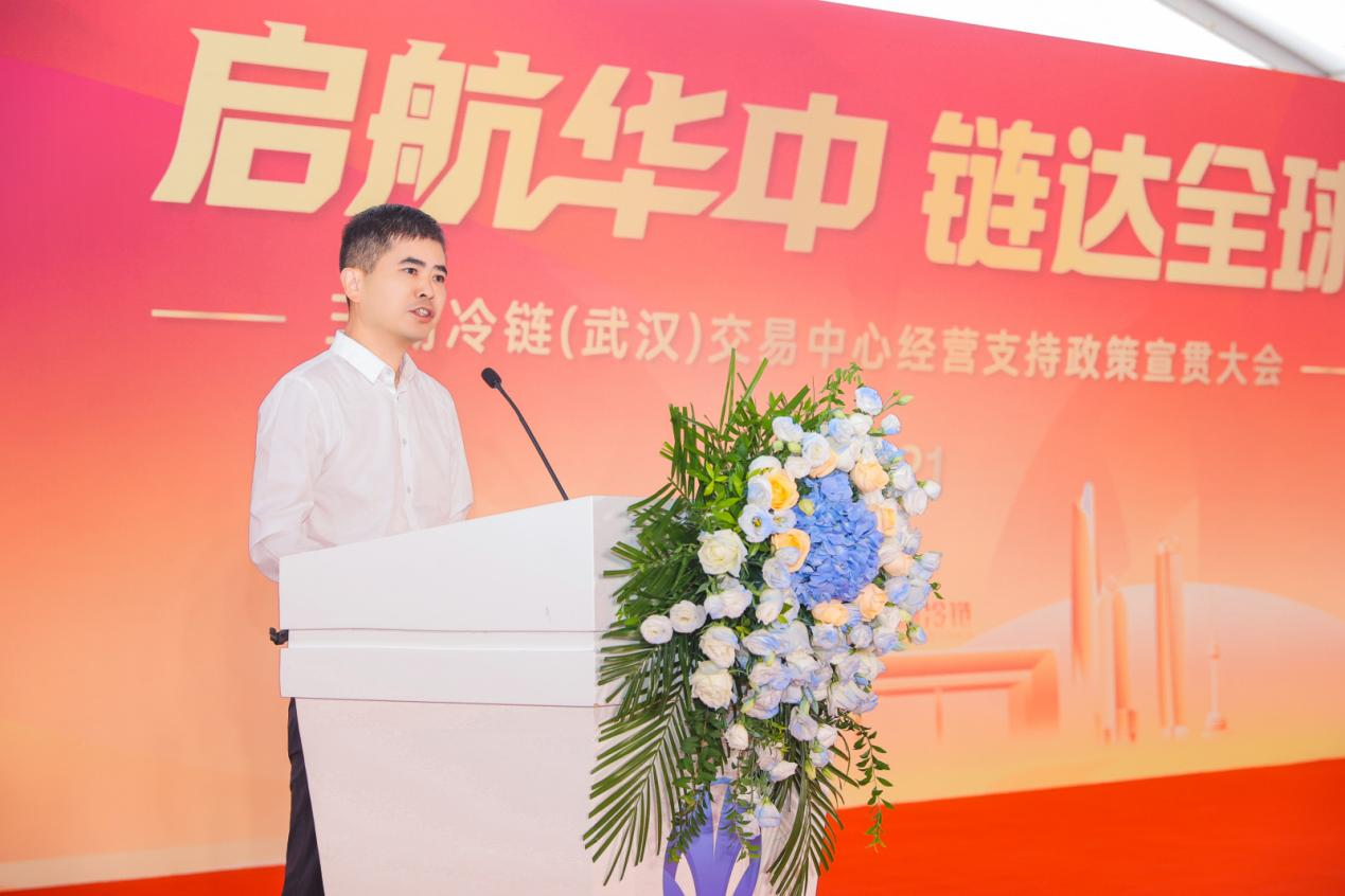 玉湖冷鏈副總裁兼武漢公司、襄陽公司董事長李元華在致辭中表示,玉湖冷鏈(武漢)交易中心從規劃到建設落地,始終得到省市區各級政府的大力支持,專案總投資30億元,占地312畝,建設8座現代化冷庫,總庫容達21.4萬噸,是華中地區規模最大、標準最高、功能最全的國際化冷鏈食品交易基地。目前已有超過300家國內外冷鏈食品龍頭企業及供應鏈企業簽約入駐,產業集群效應初步形成。園區創新打造線上交易線下履約(OMO)商業模式,實現商流、物流、資金流、資訊流的深度融合,致力於構建覆蓋全國、連結全球的冷鏈食品產業生態體系。
