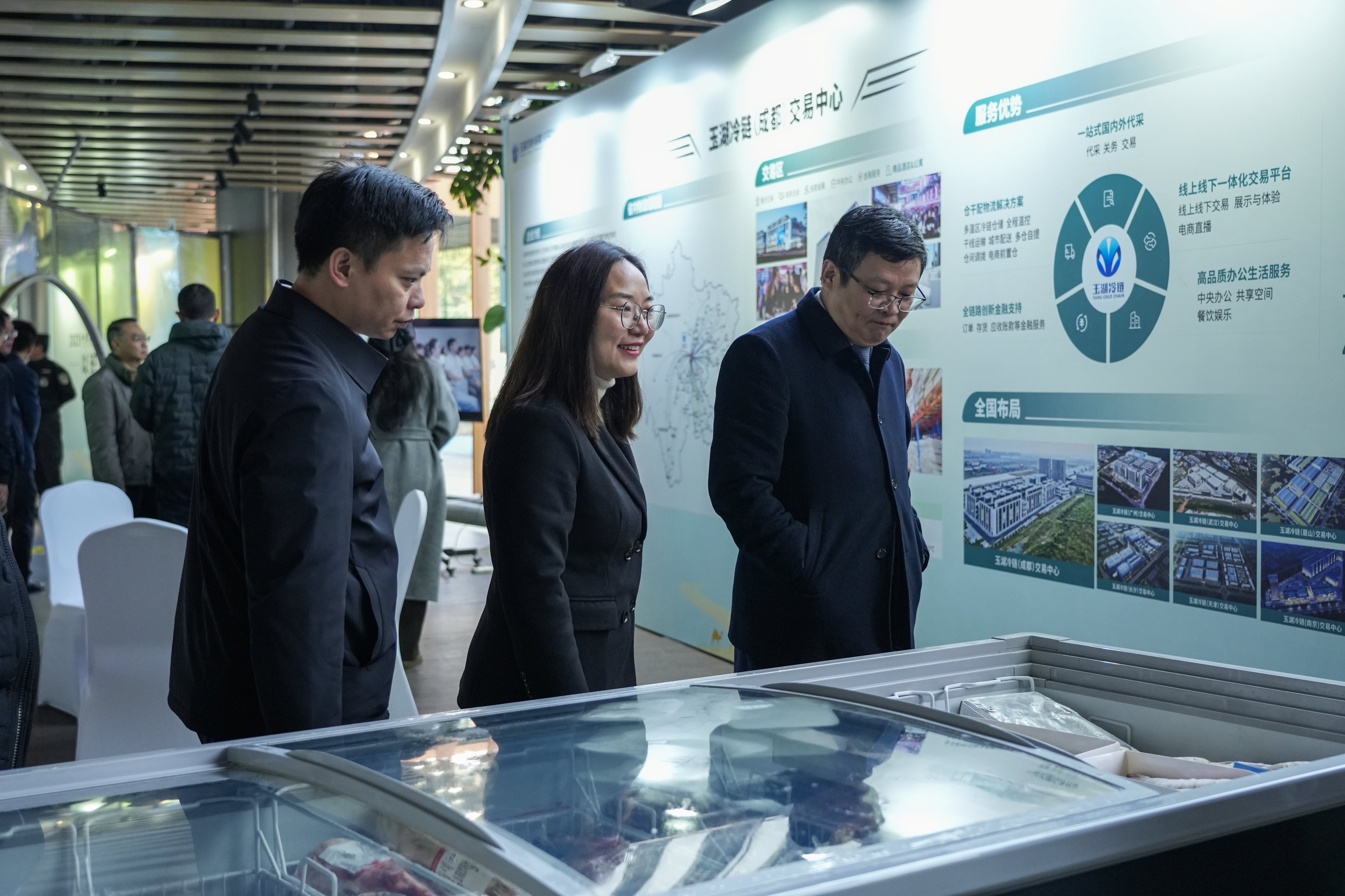 會前,成都市政府副市長陳志勇等一行實地考察了大會配套展區。玉湖冷鏈成都公司相關負責人向領導介紹了玉湖冷鏈在成都的投產與運營進展。