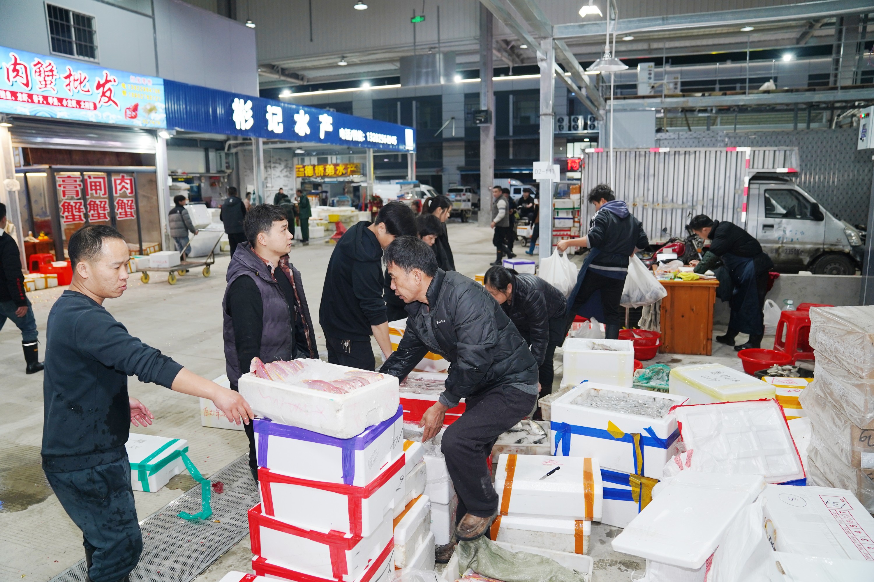 「我們從白天就啟動搬遷進場,凌晨新鮮的漁獲就全部上架了,確保進市場採購的第一批採購商能選購到最新鮮的水產品。」一位正在整理攤位的深海魚類商家介紹道。
