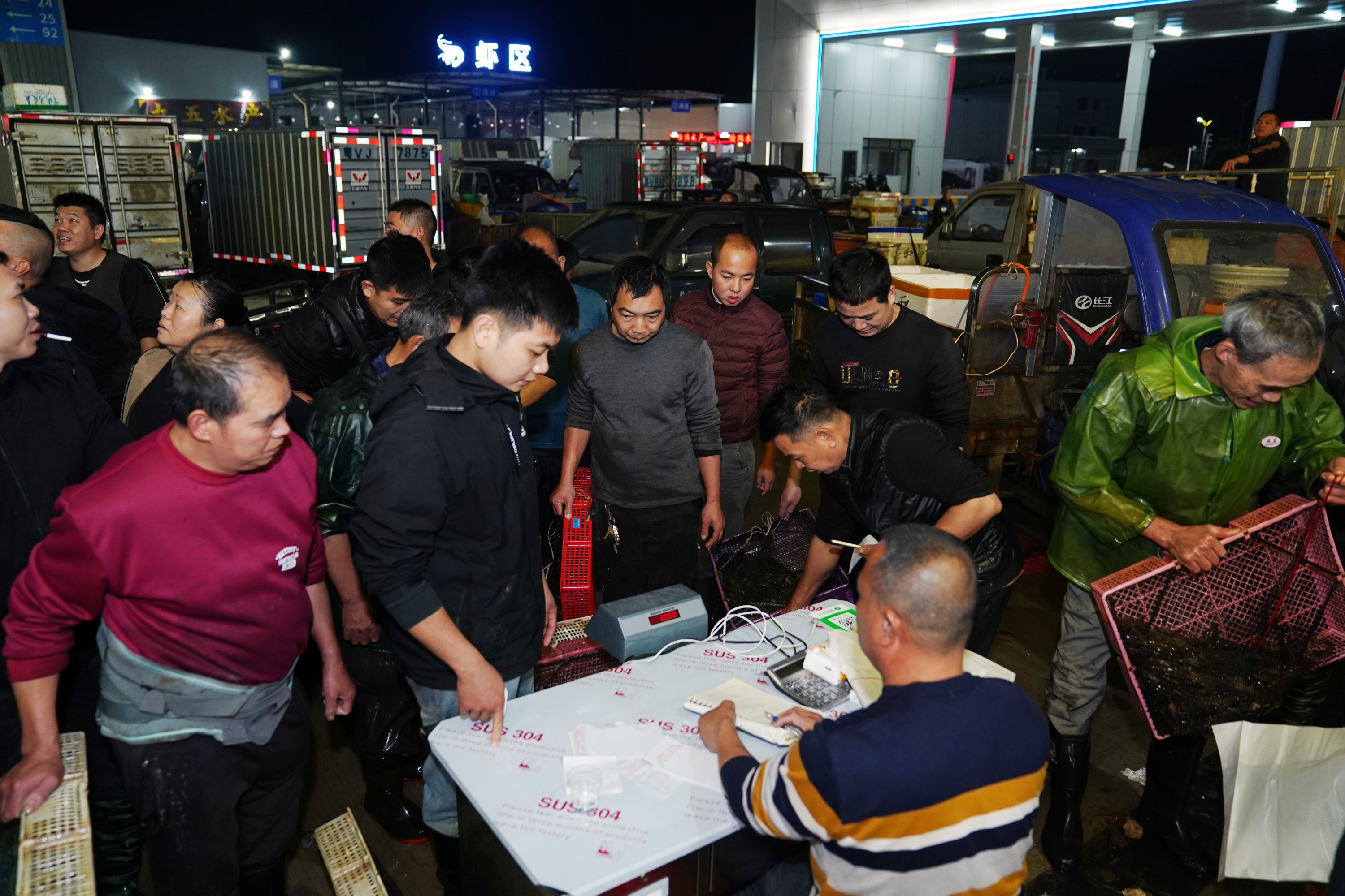 揭陽園區水產區設置檔口數量近400個,首批吸引近百家商家入駐,涵蓋魚、蝦、蟹、貝等豐富品類,各式水產品在整潔明亮的嶄新檔口上排列有序,琳瑯滿目。試營運首日,採購商絡繹不絕,市場內人氣火爆,當日進場採購車輛超過2000車次。試營運期間,園區為商家提供高效率的整合營運支援與24小時全天候服務保障,協助商家順暢經營,為採購與銷售雙方打造便利高效的交易體驗。